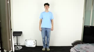 Ayo, dan... Aktion! Halo, nama saya Andrew Walton. Usia 18 tahun, tinggi badan 180 cm, dan berat badan 65 kg. Terima kasih. Oke, ke depan. Terima kasih.